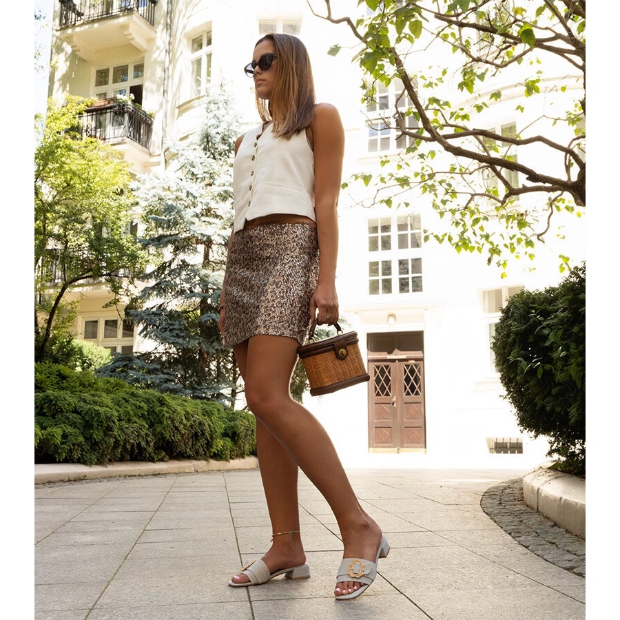Thanks to its insertion, these flip flops are extremely practical and easy to put on. A feature that adds a special charm to them are delicate rhinestones, which subtly shine, introducing a bit of luxury to everyday outfits. A 4.5 cm high sole made of plastic provides comfort when walking, and the ecological leather insert guarantees the pleasure of wearing.