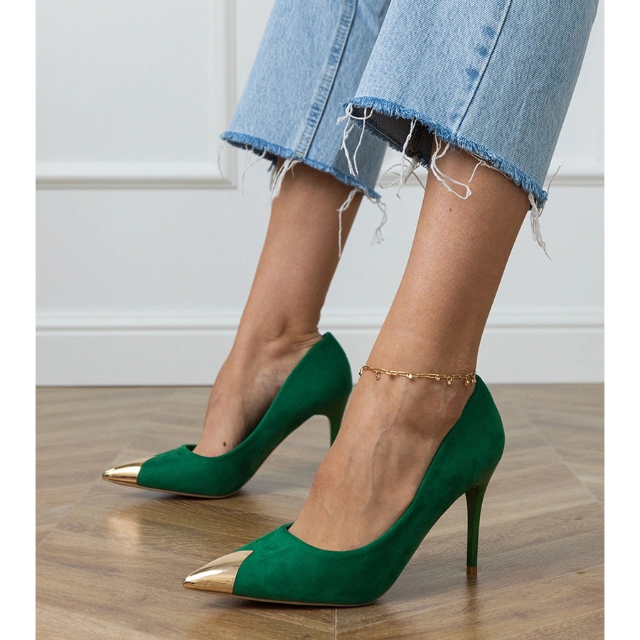 Discover the unique green ecosam pumps with a metallic nose model FB-290, which will become an integral part of your fashion collection. These elegant shoes combine a classic style with modern trends, which makes them the perfect choice both on a daily basis and for special occasions.