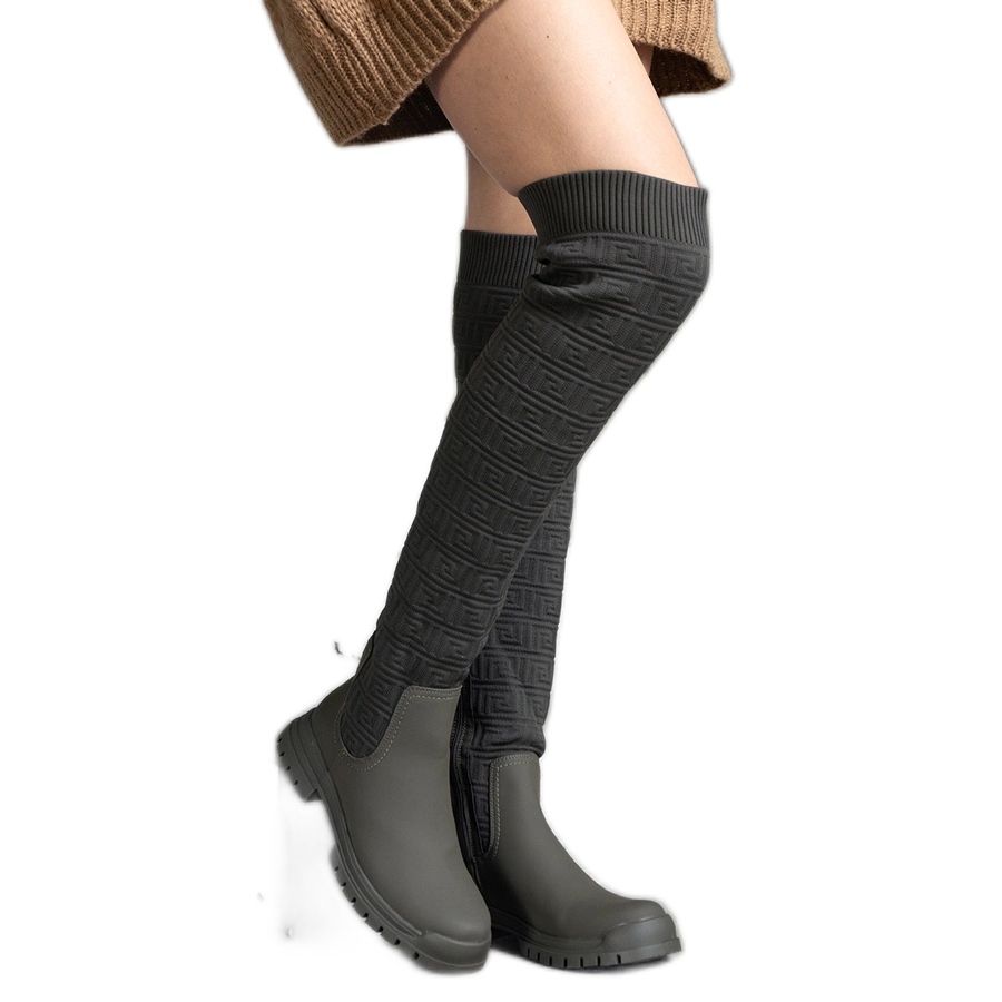 Green material boots with a matte Scarlett finish to a must-have for every fashionable woman. Their modern design combines elegance and comfort, which makes them the perfect choice for cooler days. Made of high quality fabric, these boots are not only Fashionable, but also practical.