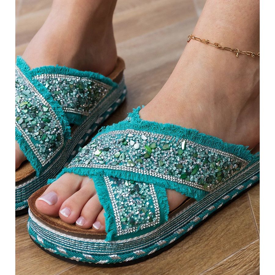 The cut on a 4 cm high platform makes these flip flops perfect every day - they are perfectly arranged to the foot, which ensures comfort throughout the day. Impressive rhinestones placed on the strips give them shine, making every stylization gain freshness and a little glamor.