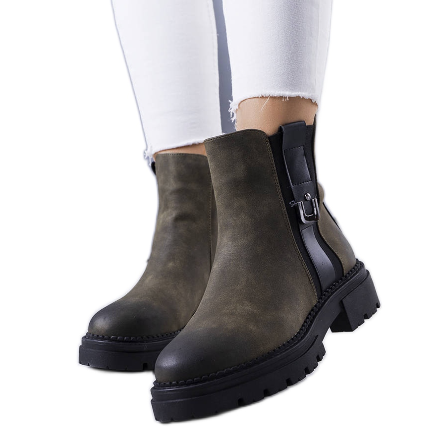 Women's Xiomar boots in a deep shade of green (DK.Green) is a combination of fashionable appearance and practical solutions. Made of ecological leather suede, insulated with soft fur in the interior, provide comfort and heat on cooler days. The solid, trapper with black rubber insulates from the ground, has anti -slip properties and subtly raises the figure (about 5 cm).