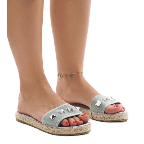 Inna marka Green jeans slippers with studs 7087 multicolored
