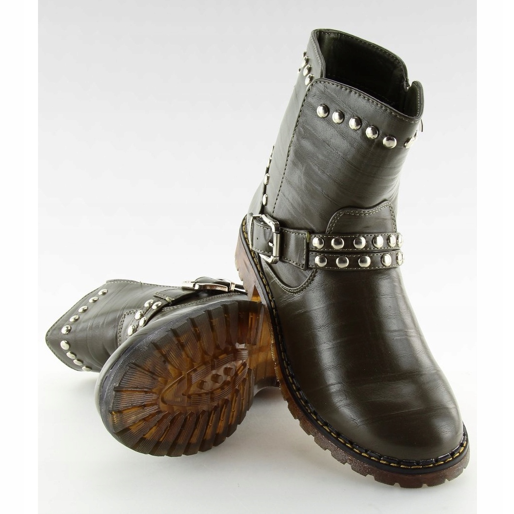Discover style and comfort with the A-30 Green women's military ankle boots! These original flat ankle boots combine modern design and functionality, perfectly fitting into everyday styling. Effective decorative elements, such as studs and careful stitching along the sole, attract attention and add character to every set.