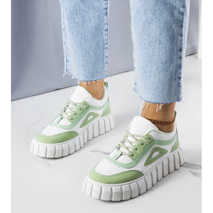 Green sneakers on the Robyn platform from D/GMR are a great choice for every woman who wants to combine comfort with style. These lace -up sneakers, set on a high platform with a wide groove, catch the eye with both their fashionable form and a spectacular print. The upper reaching in front of the ankle subtly combines elegance with a casual character, and carefully made stitching gives them an original accent.
