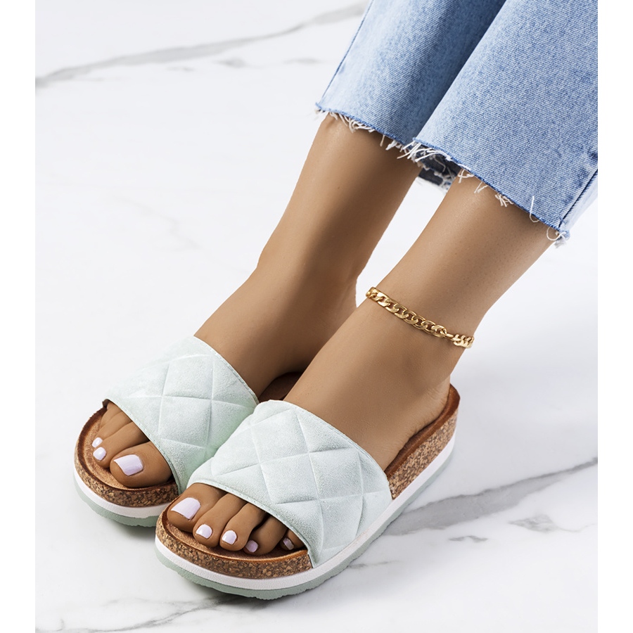 Green Galts cork sole flip flops are the perfect choice for summer days, which will add a unique character to your styling! Made of high-quality eco-suede, these flip flops are characterized by a beautiful quilted pattern that not only attracts attention, but also provides maximum comfort.