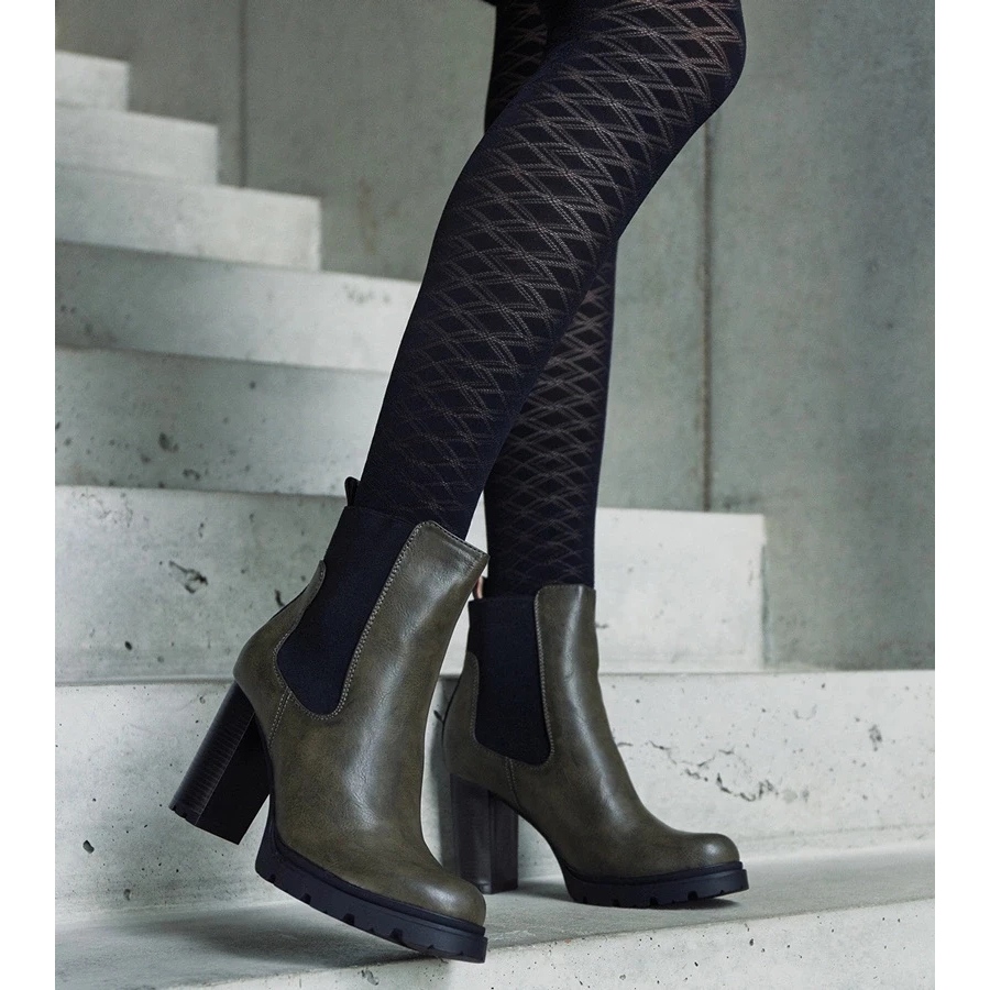 Motena boots are inserted, which makes it easier to put on and take off, and a comfortable fabric insert makes them comfortable even after a long day of wearing. Green color adds energy to any stylization and goes well with many styles.