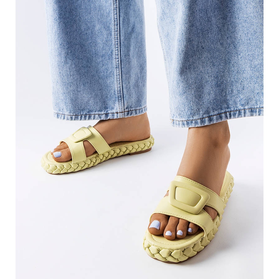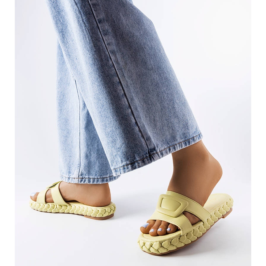 Green Francesco platform flip-flops are a great choice for summer days for every woman who values both comfort and a fashionable look. Made of high-quality eco-leather, these flip-flops provide durability and ease of care. Their minimalist design without patterns makes them a perfect complement to many casual styles.