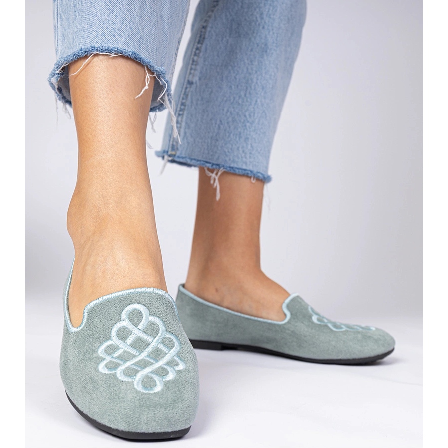 Details: Green Women's Ekozamszowe Ballerinas with embroidery