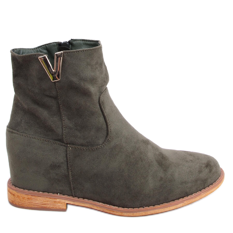 Discover exceptional elegance and comfort in suede ankle boots with a hidden wedge ZT1013 in green. These fashionable women's ankle boots not only attract attention with their subtle, gold decoration, but also perfectly match autumn stylings. Thanks to the practical zipper fastening, they are extremely easy to put on, which makes them an ideal choice for everyday wear.