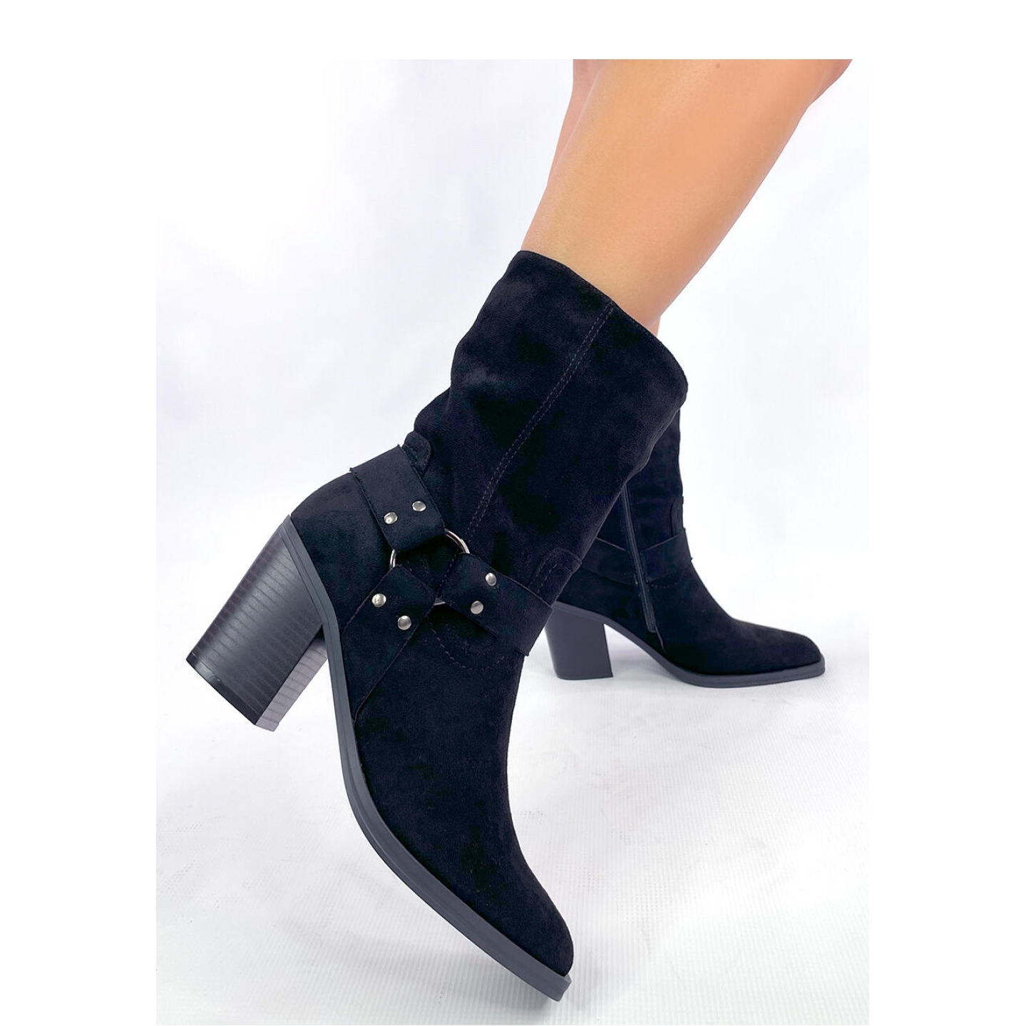 Hardin Black suede boots from INELLO are the perfect choice for women who want to combine a fashionable look with comfort. These unique shoes with a high upper are distinguished by an unusual cut with square toes, which gives them an original character. The zipper fastener, placed on the side of the upper, makes putting on and removing footwear fast and comfortable.