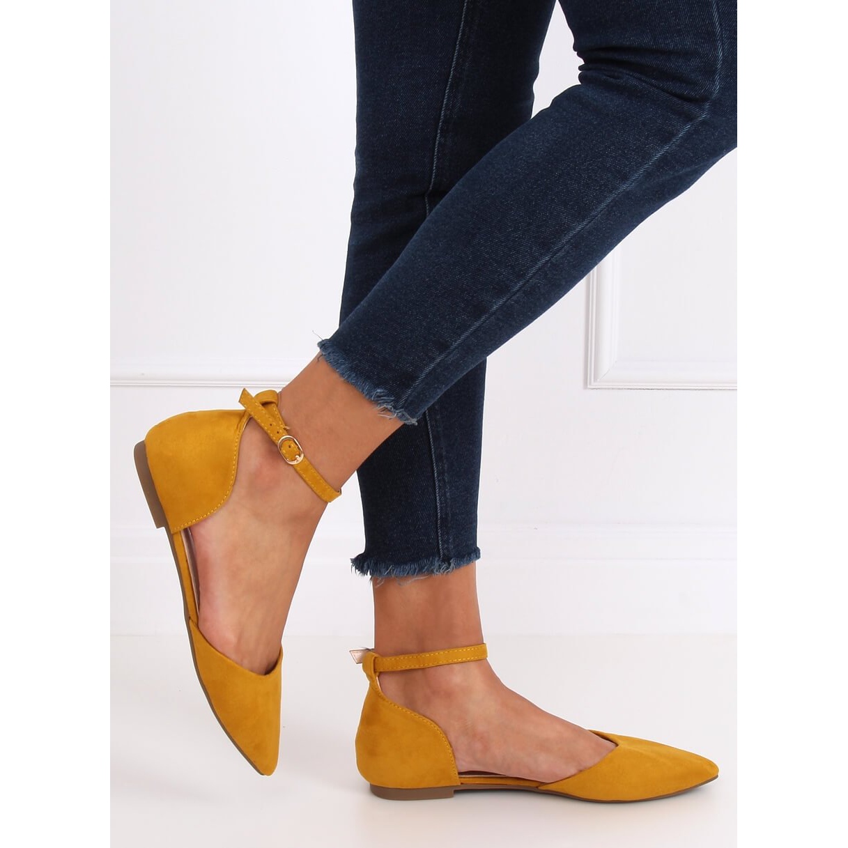 Introducing the HD-100 honey yellow cut-out ballerinas that combine elegance with everyday comfort. Made from eco-suede, these women's suede ballerinas combine modern design with subtle details.