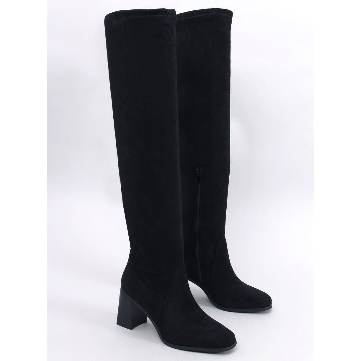 HERMI Black high heels are a great choice for women who value elegance combined with comfort. These black, suede boots with an advanced cut over the knee perfectly emphasize the figure, and their square noses add a modern character. A stable post with a height of 8 cm provides comfort when wearing, while allowing long walks or social gatherings.