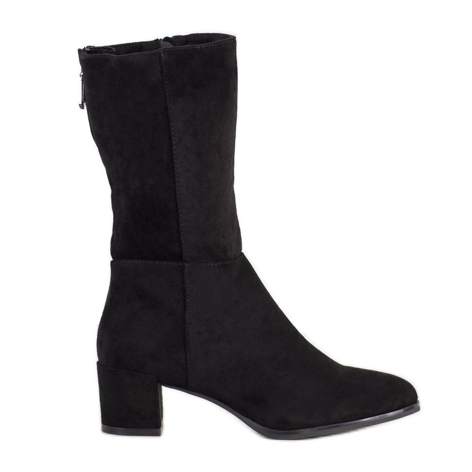 Their classic shape with a round toe and a stable, 5 cm heel in the shape of a post adds style while providing comfort when walking. The smooth sole made of plastic makes the boots durable and resistant to external factors. The zipper fastening makes it easy to put on, and the closed heel adds stability.