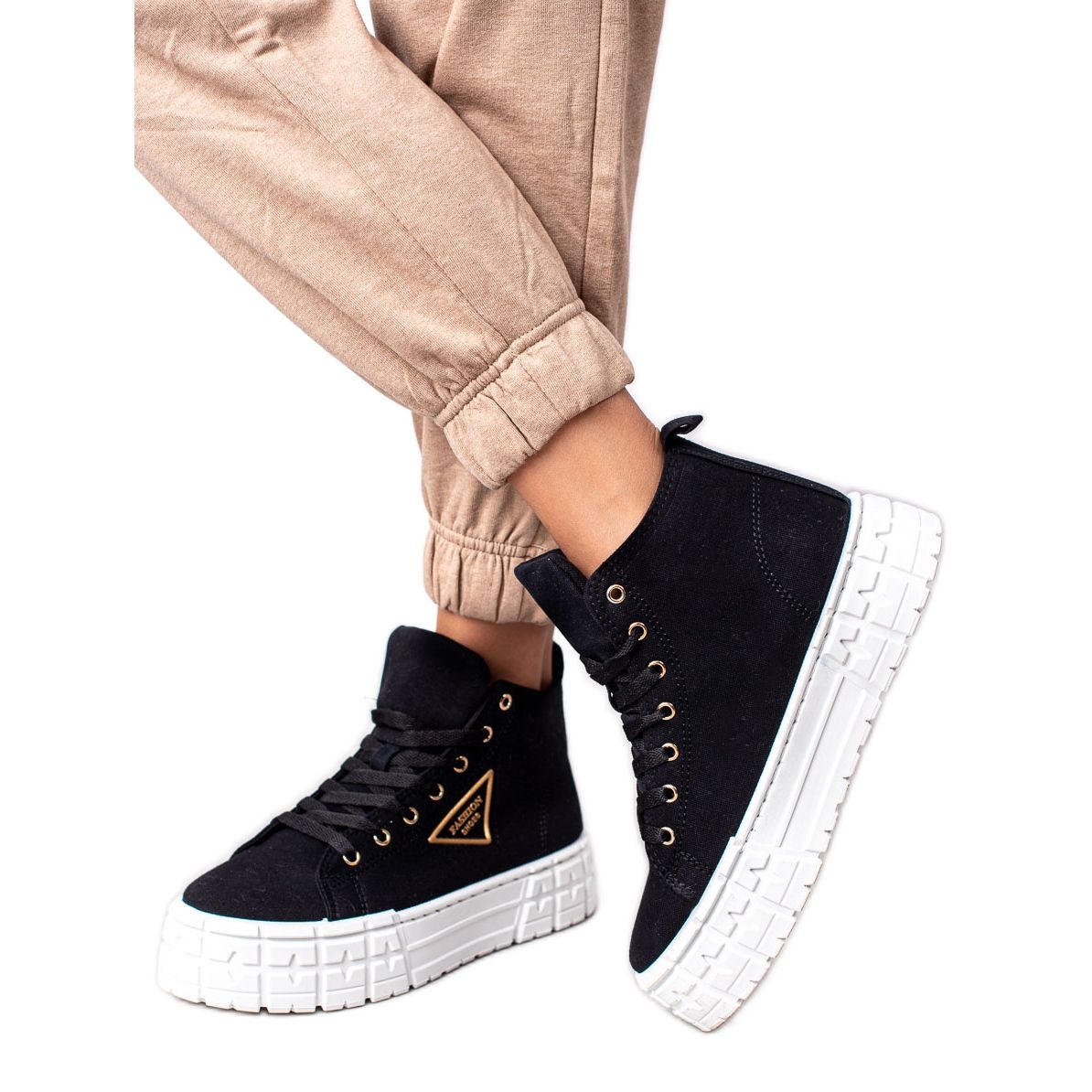 These sneakers will be the perfect complement to many casual styles in the spring/summer season. Regardless of whether you are planning a walk in the park or a meeting with friends, Goodin Wysokie Trampki Fashion black will meet your expectations. They are also available in the original manufacturer's box, which makes them a great gift idea. High quality workmanship and fashionable design make these shoes a must-have in your collection.