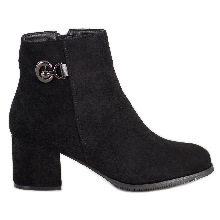 J. Star high-heeled ankle boots in classic black are an elegant proposition for women who value both style and comfort. Made of high-quality ecological suede, these ankle boots stand out with their fashionable design and functionality. The zipper makes it easy to put on and take off, and the subtle decorative element placed on the outside adds feminine charm.