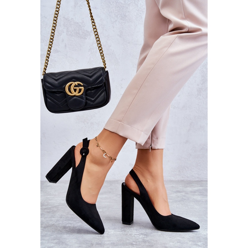 The pumps are fastened around the ankle with an adjustable strap with a buckle, which allows for a perfect fit for every foot. Made of eco-suede, and the eco-leather insole ensures comfort of wearing all day long. The open heel adds lightness and elegance, creating a stylish look.