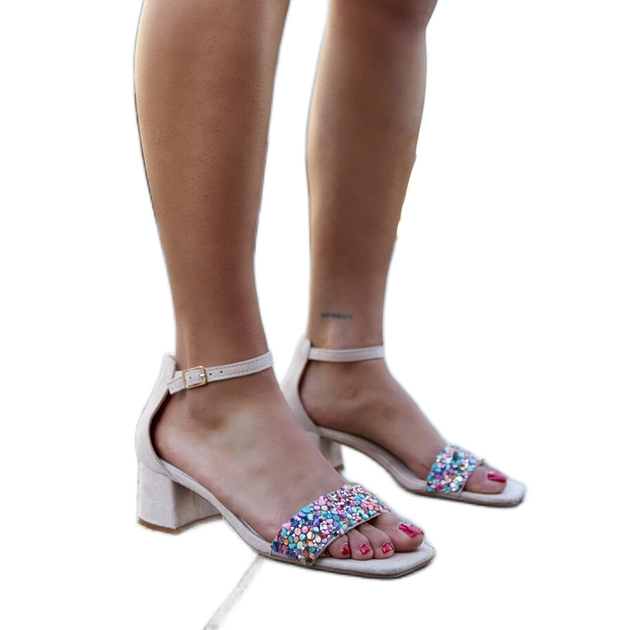 Inna marka High heel sandals with colorful Ghuson stones beige