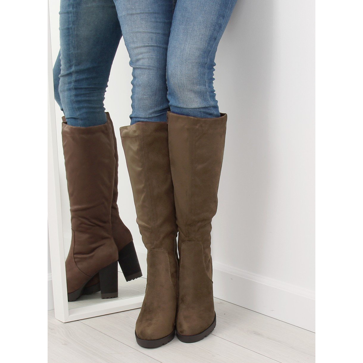 Inna marka High-heeled boots khaki 7290 Khaki