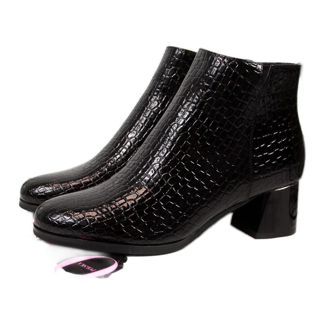 The high, 5.5 cm block heel provides stability while walking, and the rounded toe adds subtlety and femininity. The boots are insulated, making them a great choice for colder days. The zipper makes it easy to put on and take off, and the classic black color makes them match many outfits.