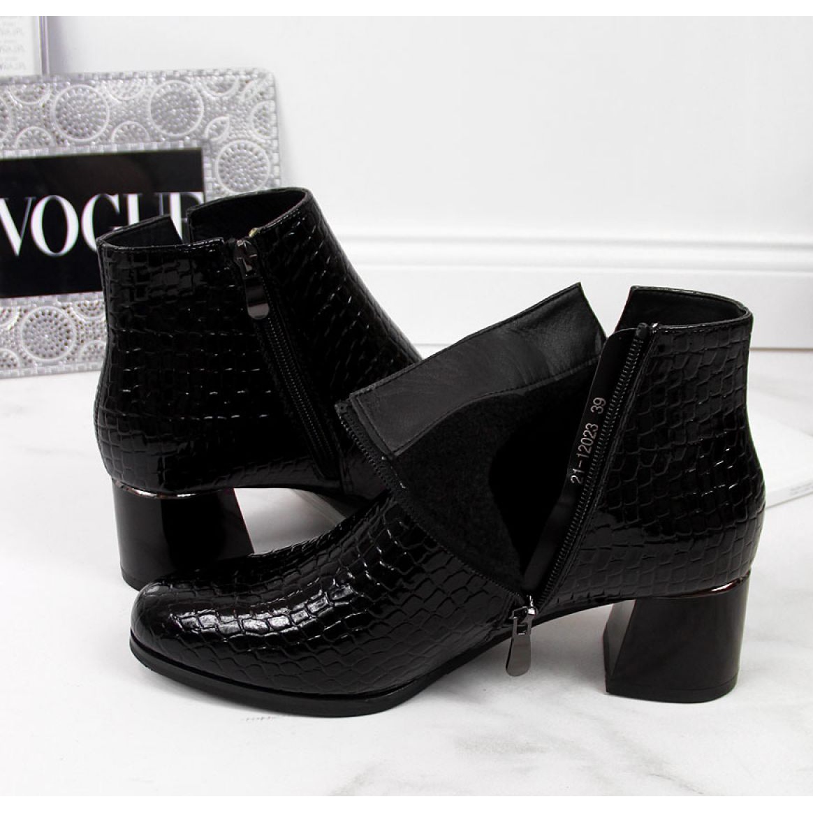 The Potocki W WOL30A snakeskin heeled ankle boots are the perfect choice for women who value a stylish and elegant look while being comfortable to wear. Made of high-quality eco-leather, these black ankle boots not only look great, but are also environmentally friendly. Their animal pattern gives them a unique character, making them a great accent to any styling.