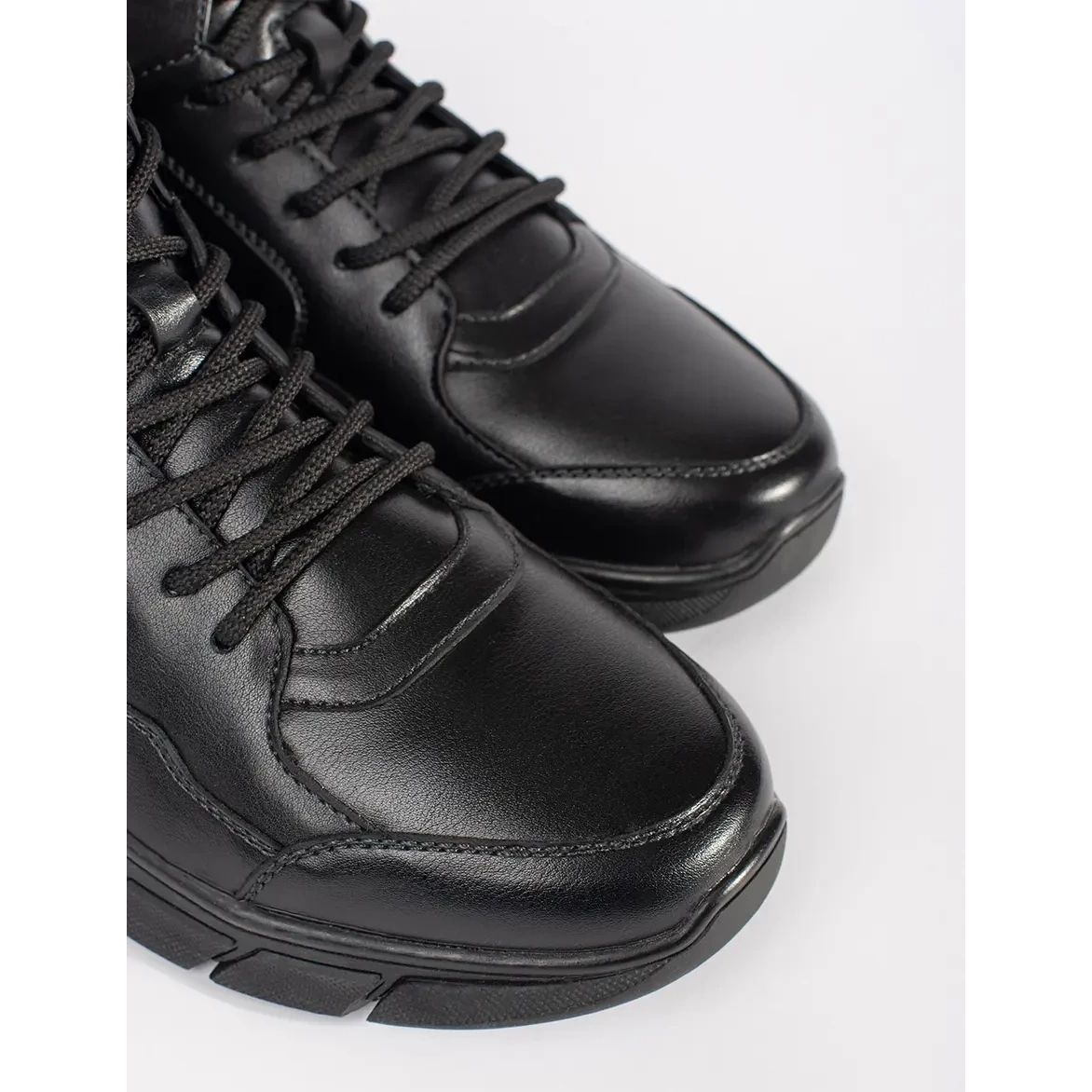 We offer elegant and practical high black insulated men's boots, made of high quality ecological leather. These stylish shoes are an ideal proposition for modern men who value both comfort and fashionable appearance.