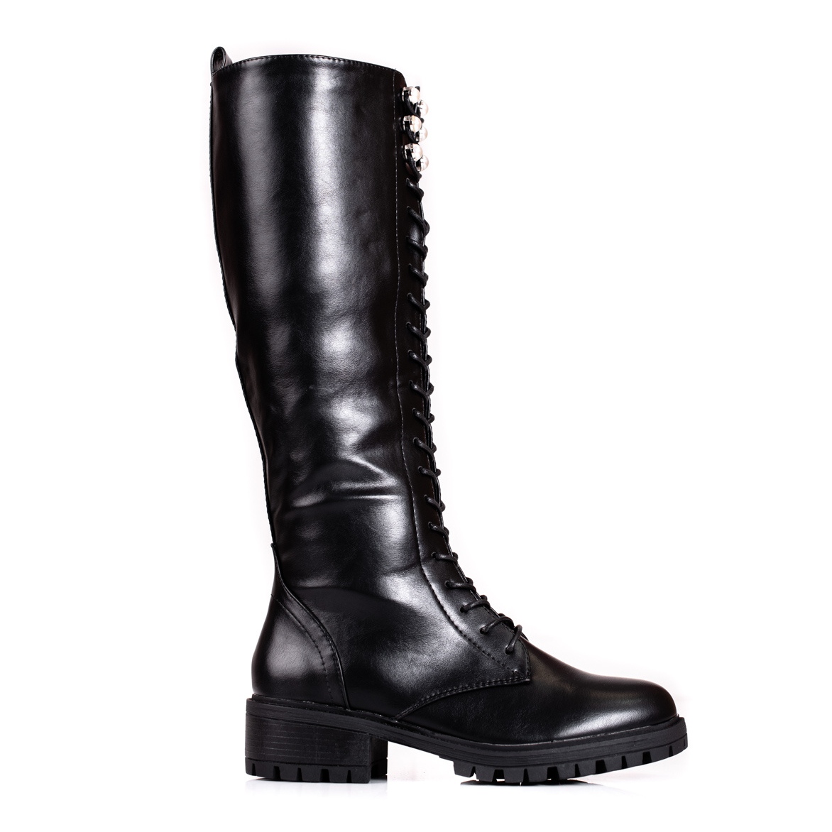 The high lace-up women's Shelovet ankle boots in black are a great choice for every woman who values style, comfort and functionality. These unique footwear combines casual and rock style, making them ideal for both everyday and more unusual occasions.