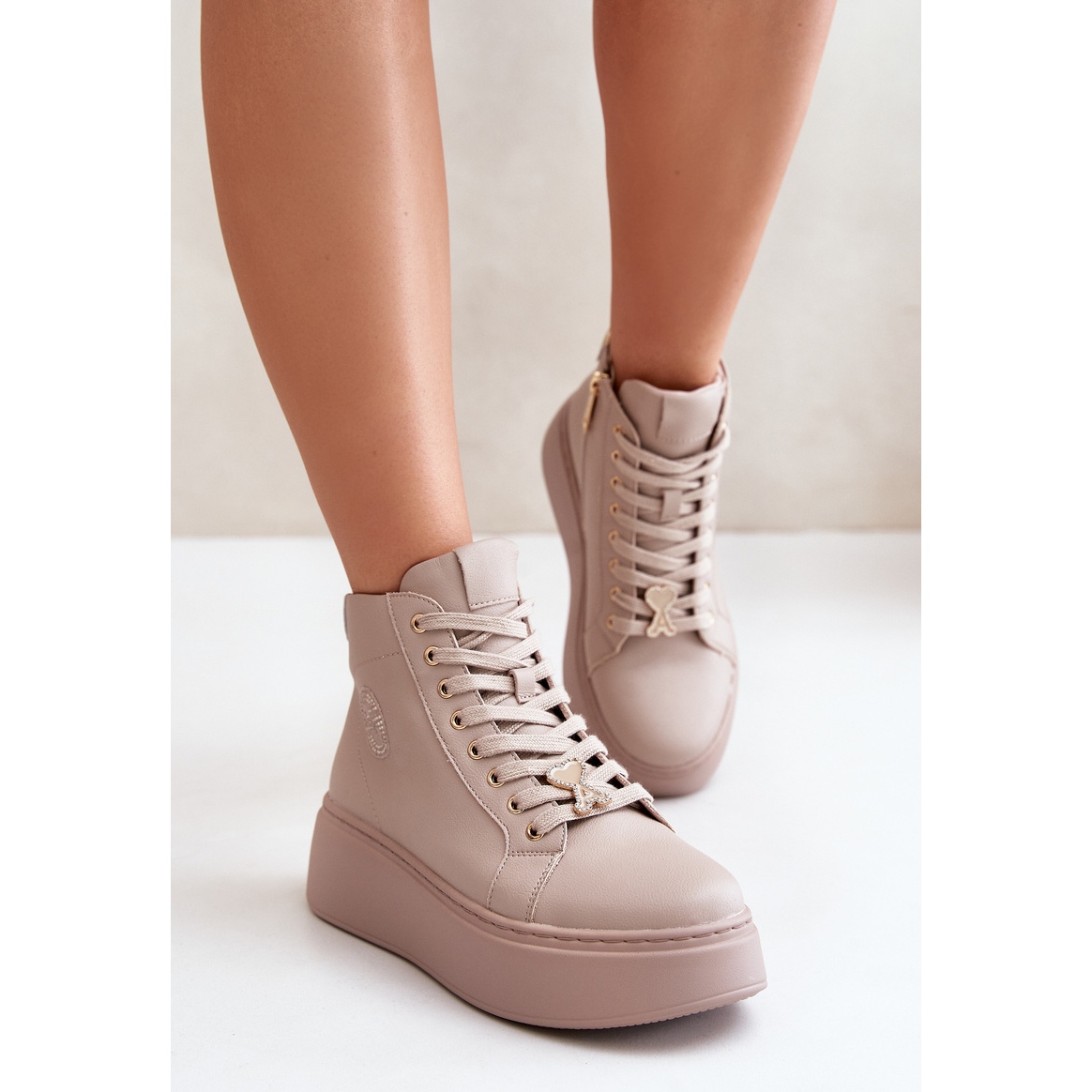 Vinceza High Leather Women's Sneakers On The Platform Vinceza 66707 Beige