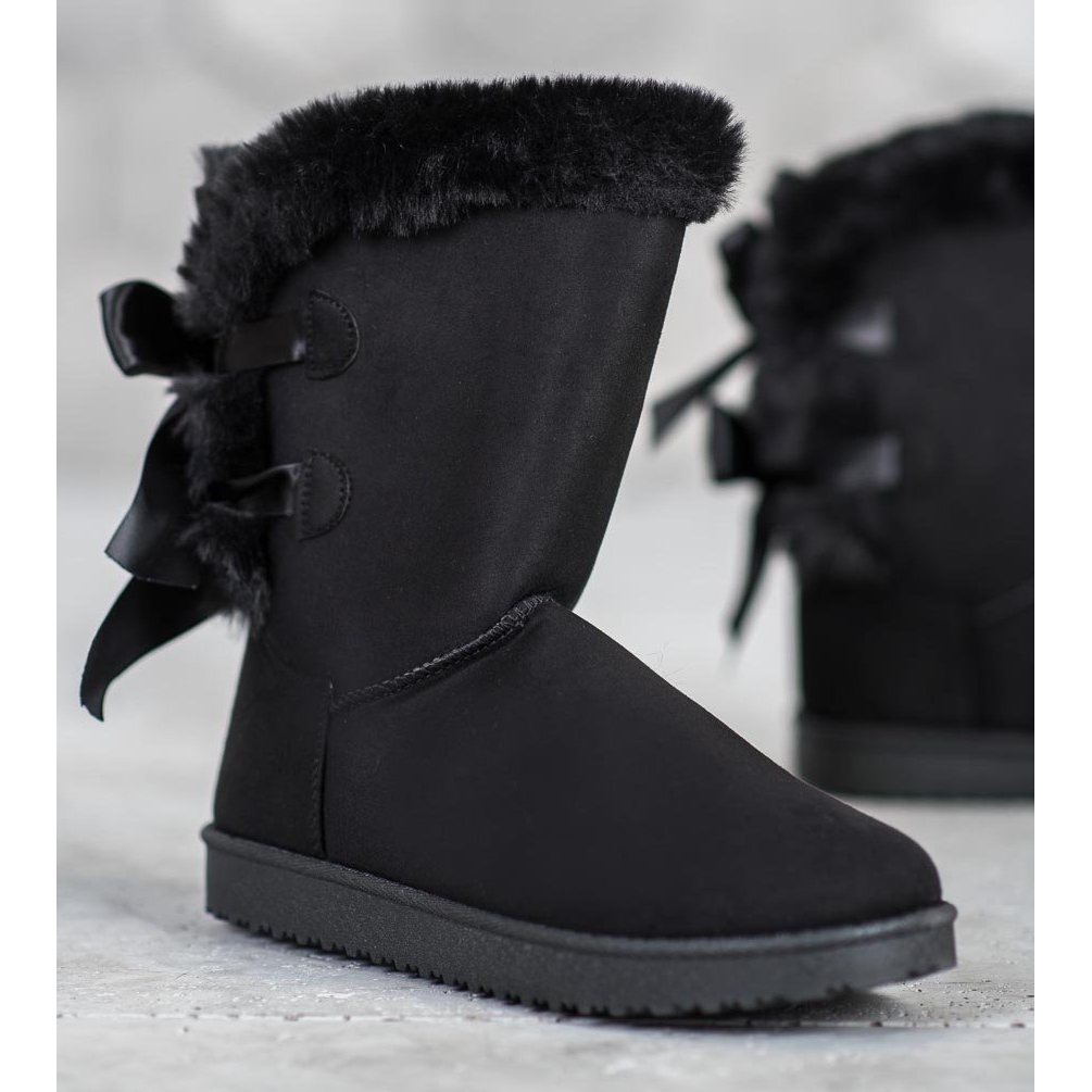 Black mukluks are footwear that impresses with its simplicity and elegance. With the addition of a bow, they take on a unique and girlish character. The casual style makes them perfect for everyday wear, complementing both everyday and more elegant styles.