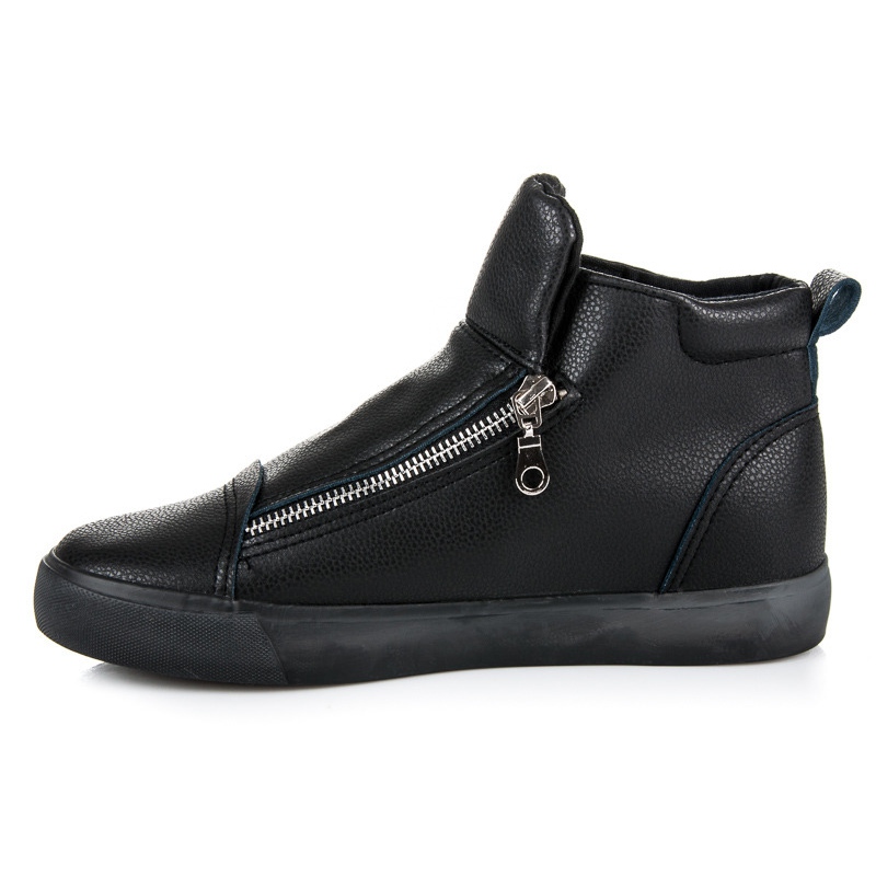 Discover a new dimension of style with the Lgm high-top sneakers with a zipper in a deep black color. These unique shoes, made of eco-leather with an interesting texture, are a great choice for every woman who wants to add a rock touch to her styling. Thanks to the sophisticated design, which combines a dark character with modernity, the sneakers will perfectly fit into casual and more elegant combinations.