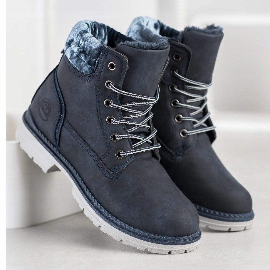 Details: SHELOVET Hiking Boots With Velor Uppers navy blue silver