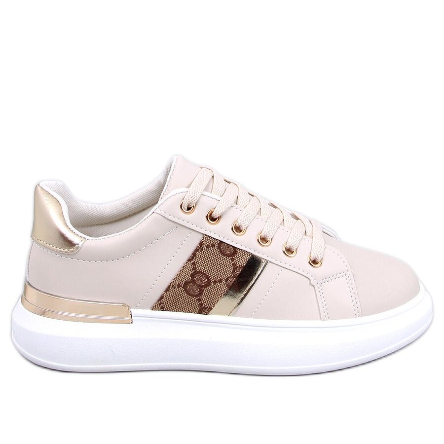Hinds women's sneakers in beige are the perfect choice for women who want to combine comfort and fashionable style. These sports glamorous shoes draw attention with their elegant design, enriched with various accessories in gold color, which give them a unique character.