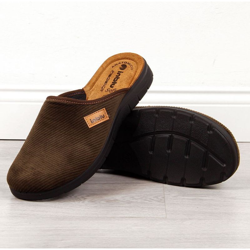Classic, comfortable home slippers Men's inblu M ARC6 in a universal brown color. Designed for daily relaxation at home - easy to insert, stable thanks to a thicker sole and comfortable thanks to the leather insert.