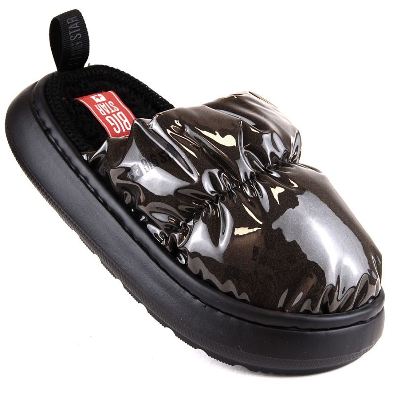 Stylish and comfortable women's slippers big star in int1910 with a metallic finish, ideal for home use. Thanks to the universal, black colors and simple cut, they blend well with various home and relaxation sets.