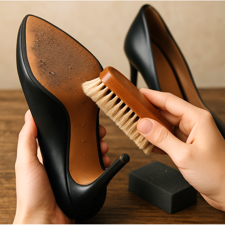Shoe care is not only about cleaning the upper part - the sole and heel also require attention. The sole is exposed to the greatest damage because it is in direct contact with the ground and various contaminants. To extend the life of the sole, it is worth cleaning it regularly with a soft brush. If the sole is very dirty, you can use a sponge with water and mild soap. After each use of shoes, it is also worth checking whether there are no small stones or other objects stuck between the tread of the sole - they can accelerate wear. If you notice that the sole is starting to deteriorate or wear unevenly, it is a good idea to take your shoes to a professional shoemaker who can repair or replace the sole. It is much cheaper than buying new shoes. The heel also requires care - if it starts to wear out, you should always contact a shoemaker before it is completely damaged. Shoemakers can easily glue a new heel or repair an existing one, which will restore the shoes to perfect condition.