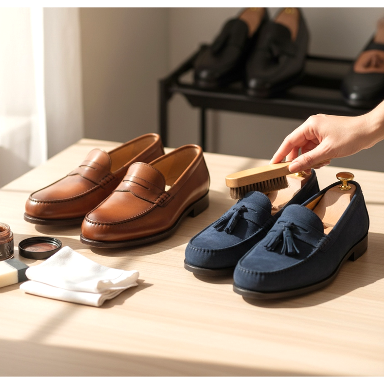 Suede loafers require a little more attention. Brush them regularly with a special suede brush, and if stains appear, use an eraser to clean the material. Avoid wearing suede loafers on rainy days.