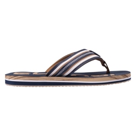Made of high quality materials, EYO flip flops offer excellent cushioning thanks to the EVA foam insert, which effectively suppresses shocks. Two wide stripes of polyester and PU confidently hold the foot, while ensuring freedom of movement. The classic, elegant design in shades of brown and blue makes the flip flops easily adapt to various styles, from beach shorts to casual jeans.