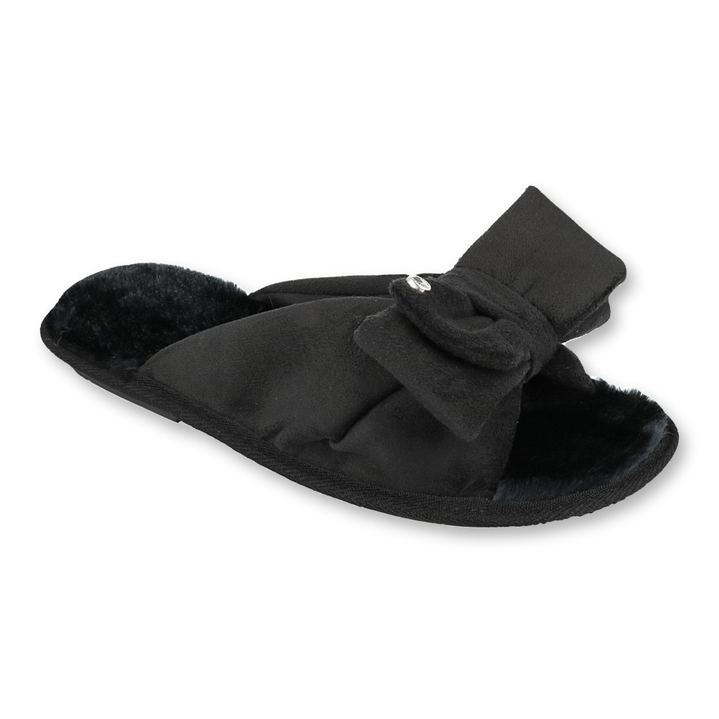 The 155D110 model stands out for its high-quality finish and materials used. The inside of the slippers is lined with soft fur, which provides excellent insulation and a pleasant feeling of warmth, and at the same time makes every moment spent at home exceptional. The unusual cut and decorative bow give them a charming character, thanks to which the legs look stylish even in home conditions.