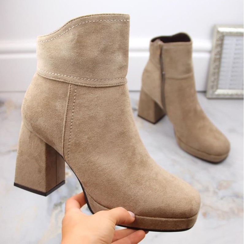 Details: Insulated suede ankle boots with high heel and platform M.Daszyński W SAN24B, beige