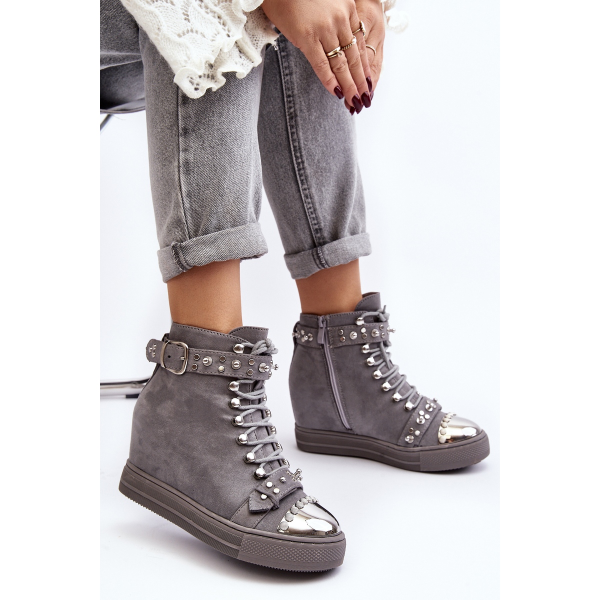 Details: Insulated wedge boots with rhinestones, suede Lu Boo, gray grey