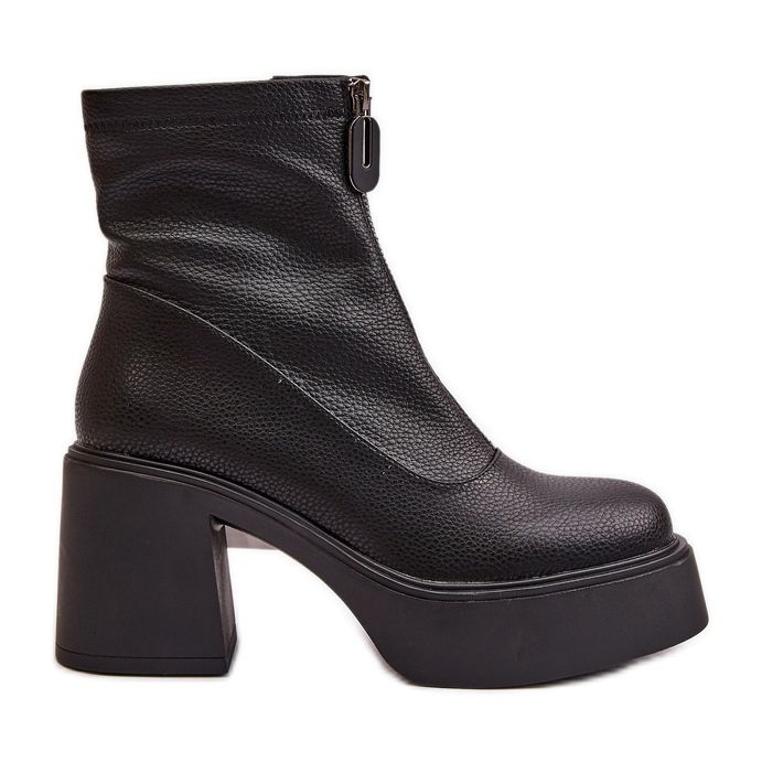 Set on a solid platform with a height of 3.5 cm and a heel in the form of a pillar with a height of 8 cm, boots combine modern design with functionality. Rounded noses add subtlety, and the insulated agent from the footwear blade guarantees heat even on the coldest days. A perfect complement to aesthetics are a decorative lock at the front and a practical zip fastener placed on the side, which makes it easier to put on and take off.