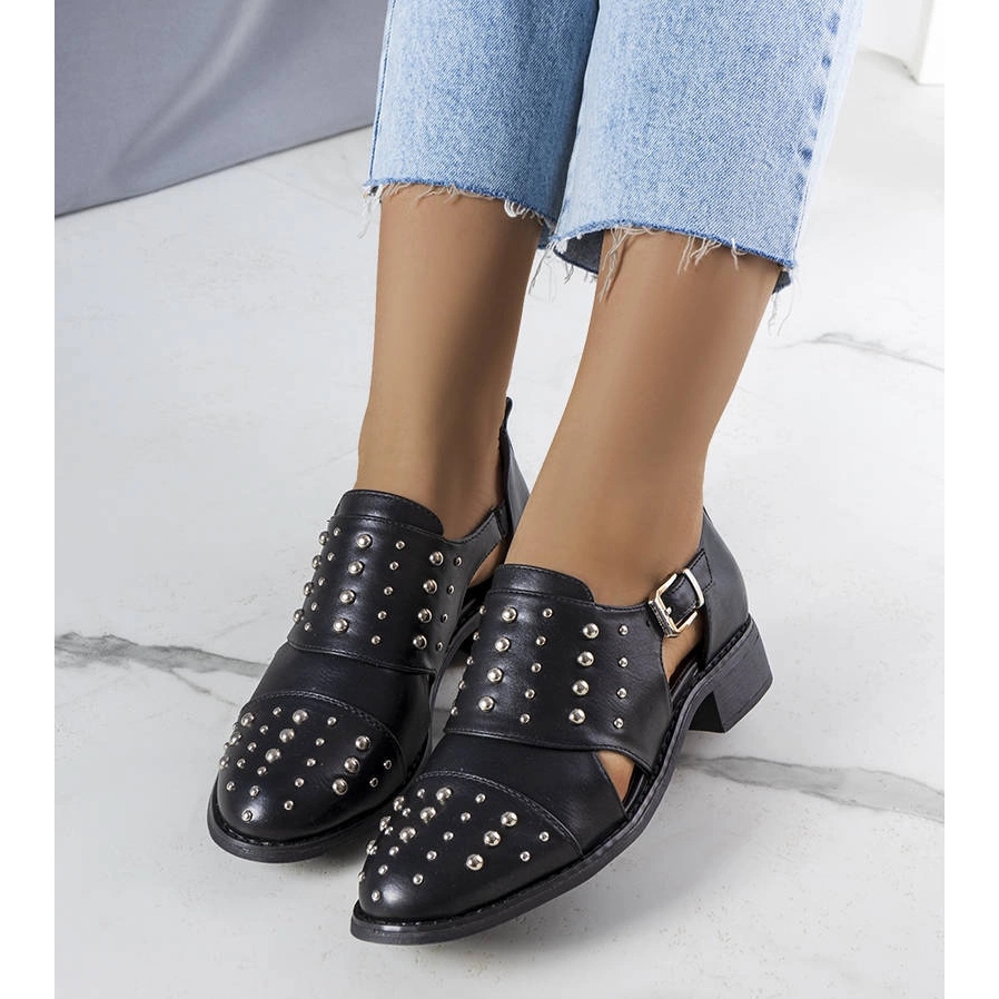 Elegant Irene shoes attract attention with a rich decoration and fashionable cutouts. Made of high quality ecological leather, they will perfectly complement casual stylizations, adding character to them thanks to metal studs and a decorative belt with a buckle. Wearing comfort is provided by a rubber sole and a soft ecological leather insert.