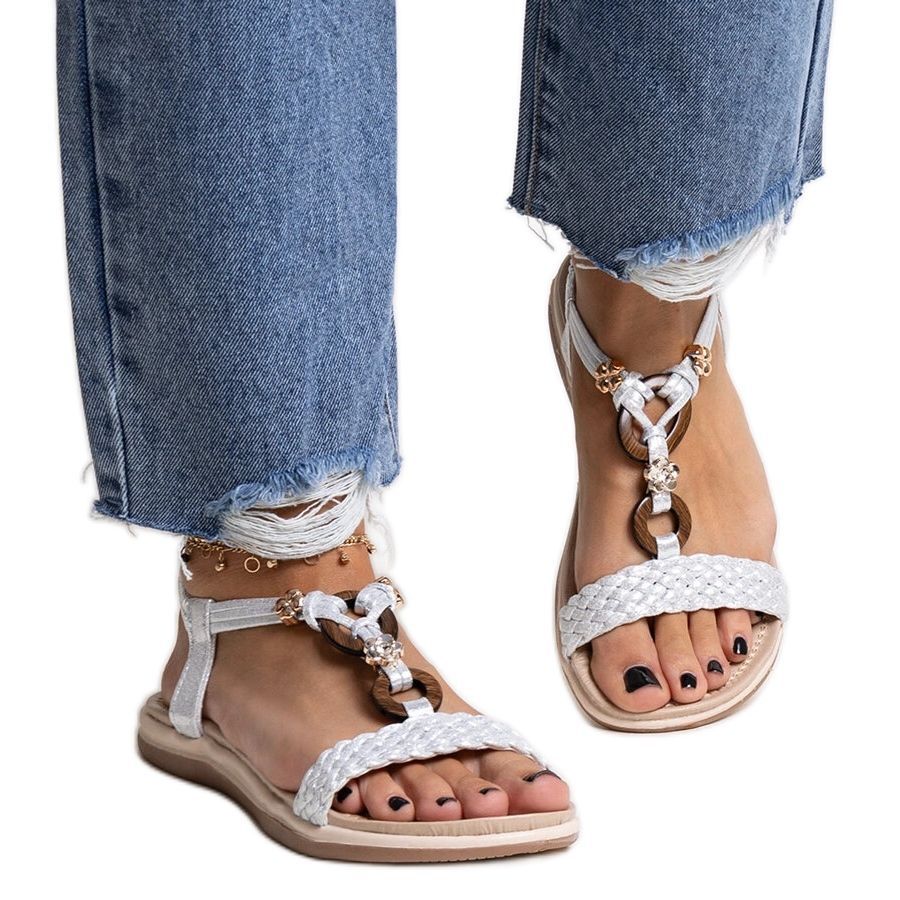 Sandals in silver are distinguished by a classic cut, and their braided construction gives them a unique character of boho. With a flat heel with a height of 2 cm, they guarantee the comfort of wearing all day, which makes them a great choice for both a walk around the city and for summer events.