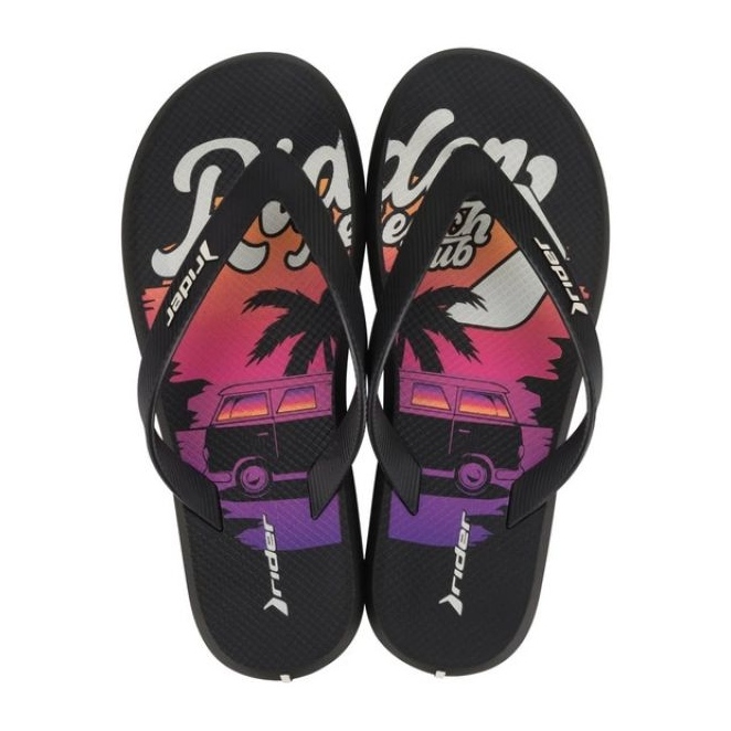 Rider R1 Energy VII AD 83633 AY964 flip -flops are characterized by a rubber interior that guarantees comfort of wearing even for a long time. Their universal black color with multi -colored accents blends in perfectly with every summer stylization, from casual shorts to colorful swimwear.