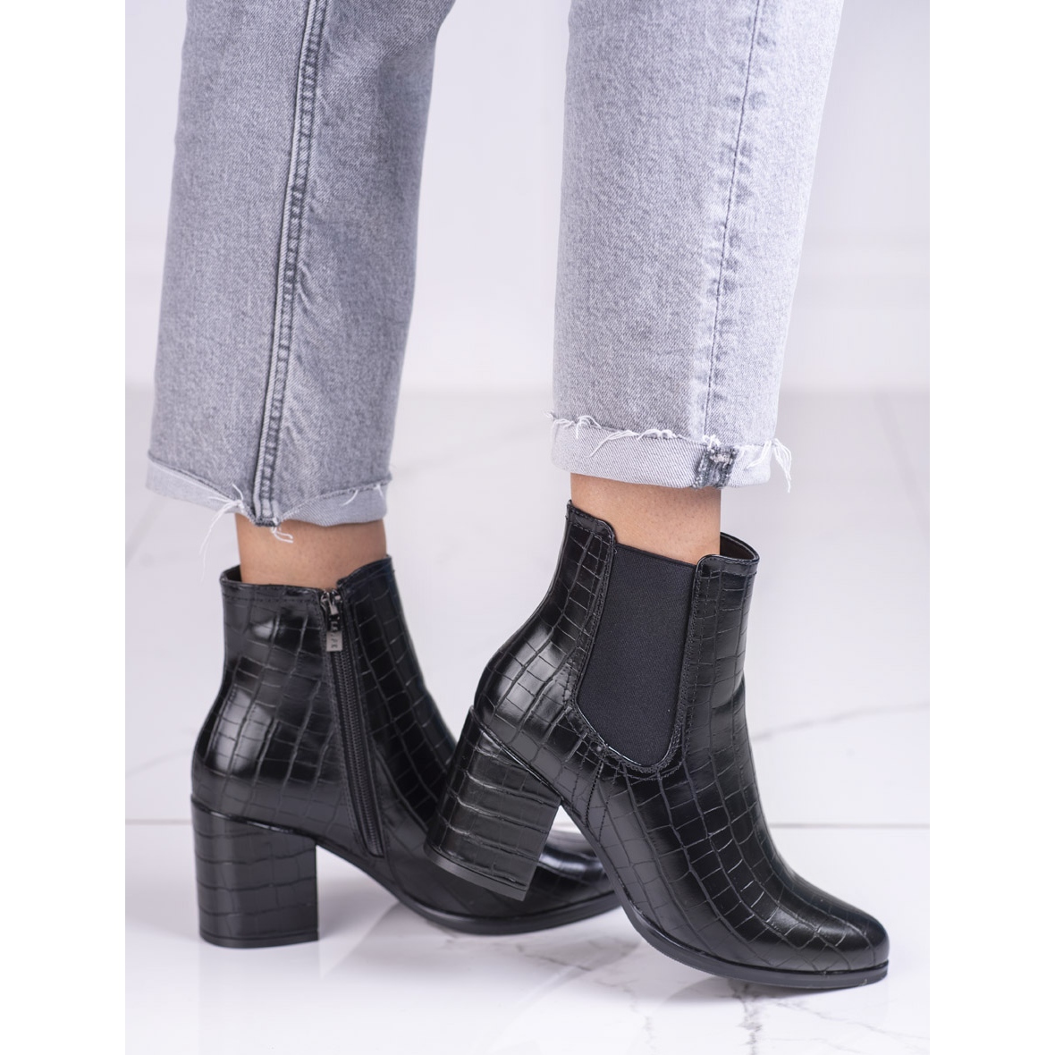 Take a look at the unique ankle boots with a block heel from SHELOVET, which are the perfect combination of style and comfort. These black, elegant shoes were created for women who value fashion in everyday styling. Made of ecological leather, they provide not only an attractive appearance, but also durability and comfort.