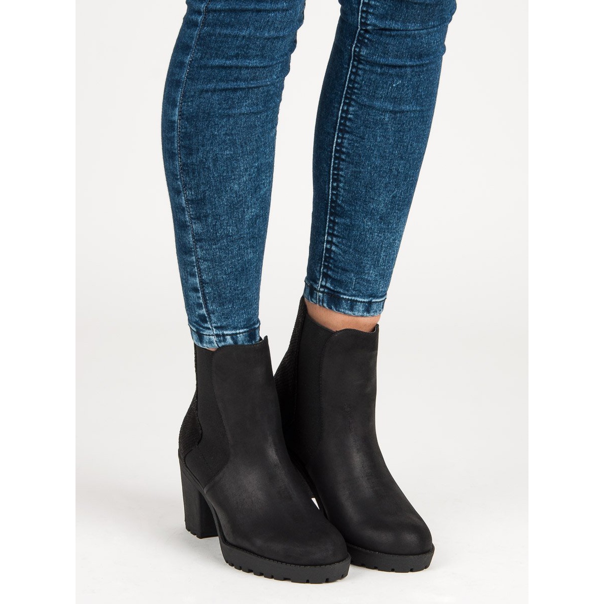 Black Chelsea boots have an 8 cm heel in the form of a column, which not only optically lengthens the legs, but also provides stability when worn. Perfectly profiled insole and soft shoe blanket make even long hours spent on your feet not felt.