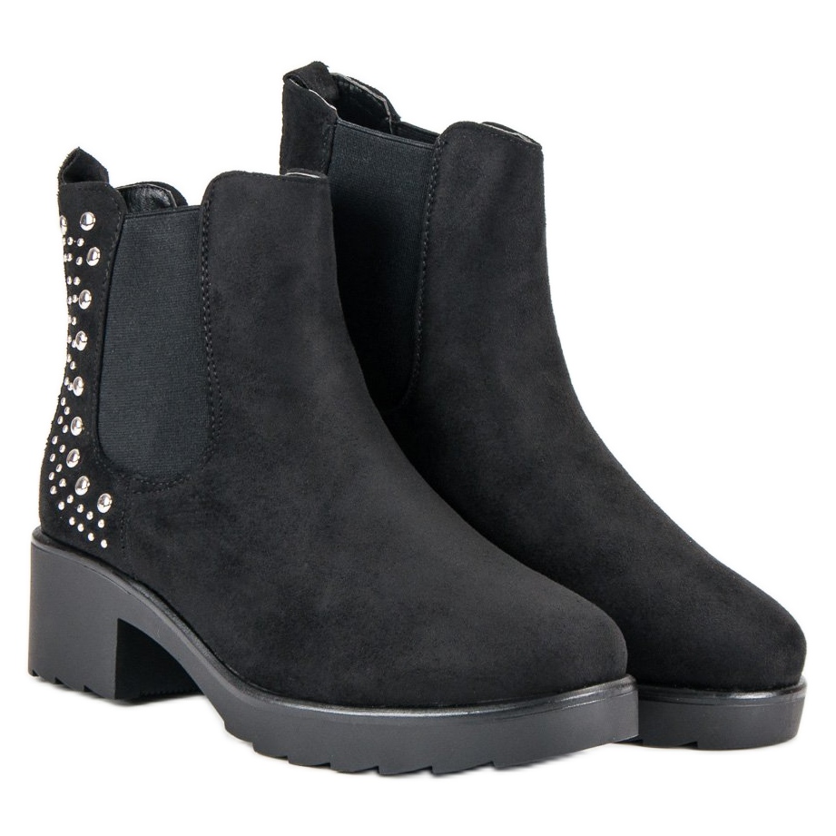 The elegant black color makes these boots a perfect match for many styles - both casual and more formal. The shiny rhinestones and studs add a feminine touch, and the 5 cm heel means you can enjoy a delicate lift without sacrificing comfort.