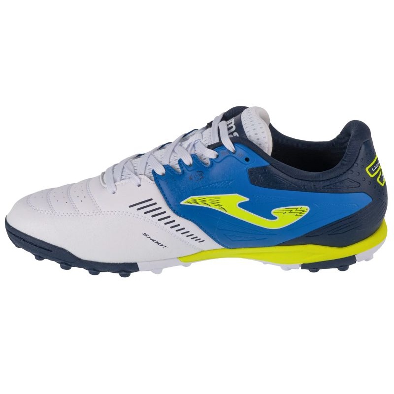 JOMA CANCHA 2402 TF M shoes are characterized by a low, laced model, which allows you to easily fit to the foot. Made of high quality synthetic leather, they are not only durable, but also aesthetic, and their white and blue color gives them a sporty character. The rubber sole guarantees excellent cushioning and stability, which is crucial during intensive games.