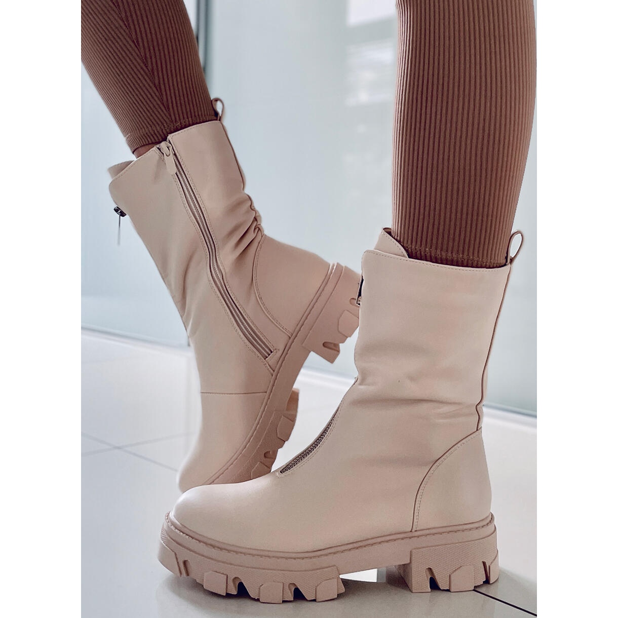 Discover original style and unparalleled comfort with Jones beige military ankle boots from the PA1 manufacturer. These women's workers are distinguished by their high upper and modern design that catches the eye. The thick, flat sole provides stability and comfort, and the effective silver zipper on the front adds character. The zipper on the side of the upper makes it easy to put on and take off, making them an extremely practical choice for everyday use.