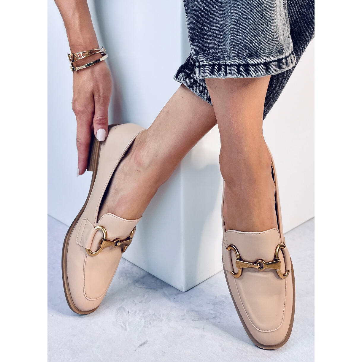 Made of high-quality eco-leather, these loafers offer not only style but also comfort. The gold chain decoration adds chic and sets them apart from other models. The 2.5 cm flat heel ensures comfort while wearing, and the smooth, beige color goes well with a variety of outfits.