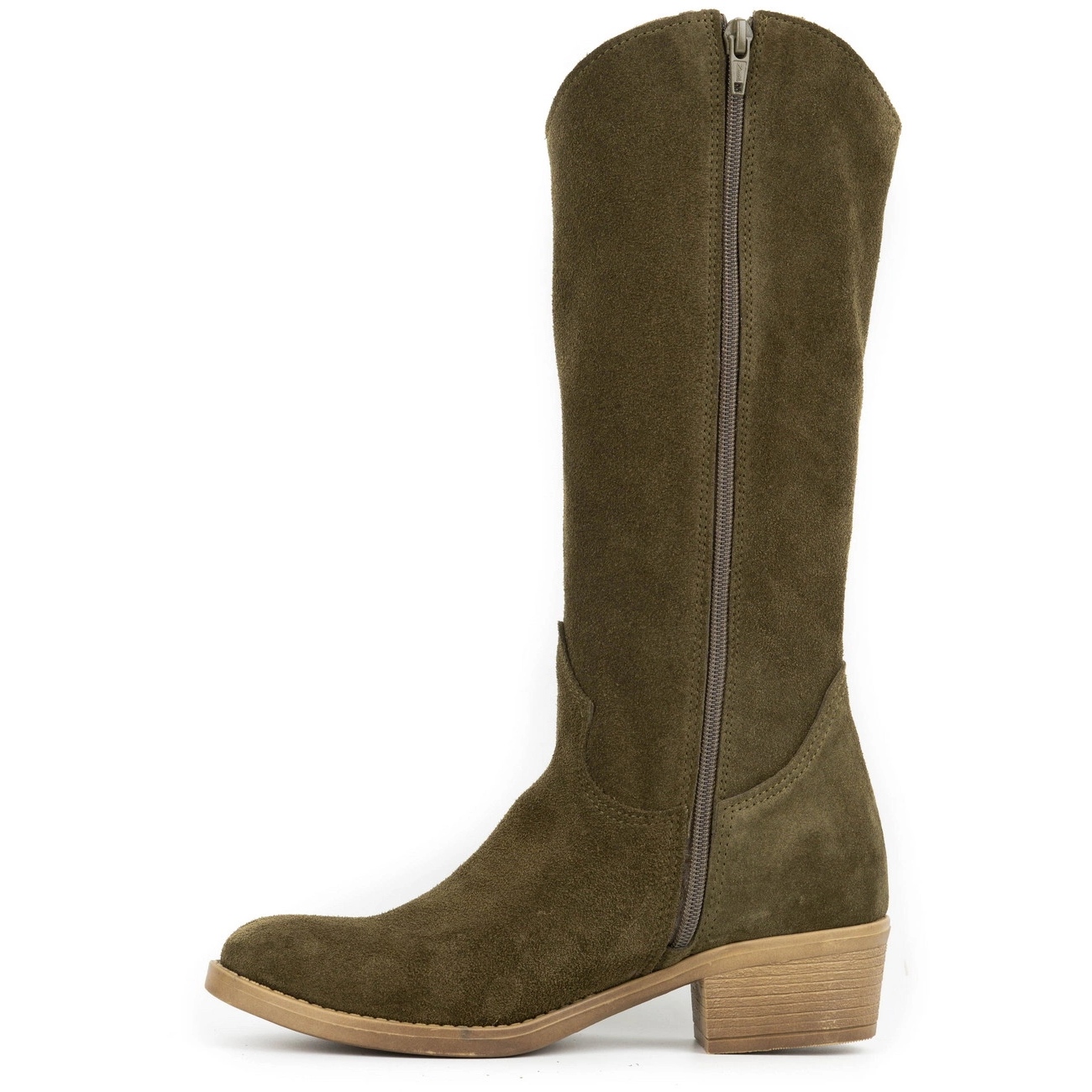 Olivier Julia - Women's natural suede leather in green color. The classic knee cut with a subtle, almond toe and a stable heel on a block (5 cm) combines comfort with timeless elegance - ideal for both everyday stylizations and for more formal outputs.